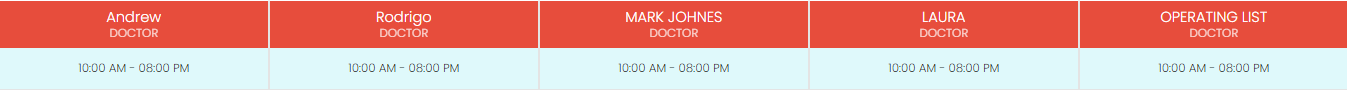 - Staff columns (horizontal) with a button to scroll to the current time (left clock icon)